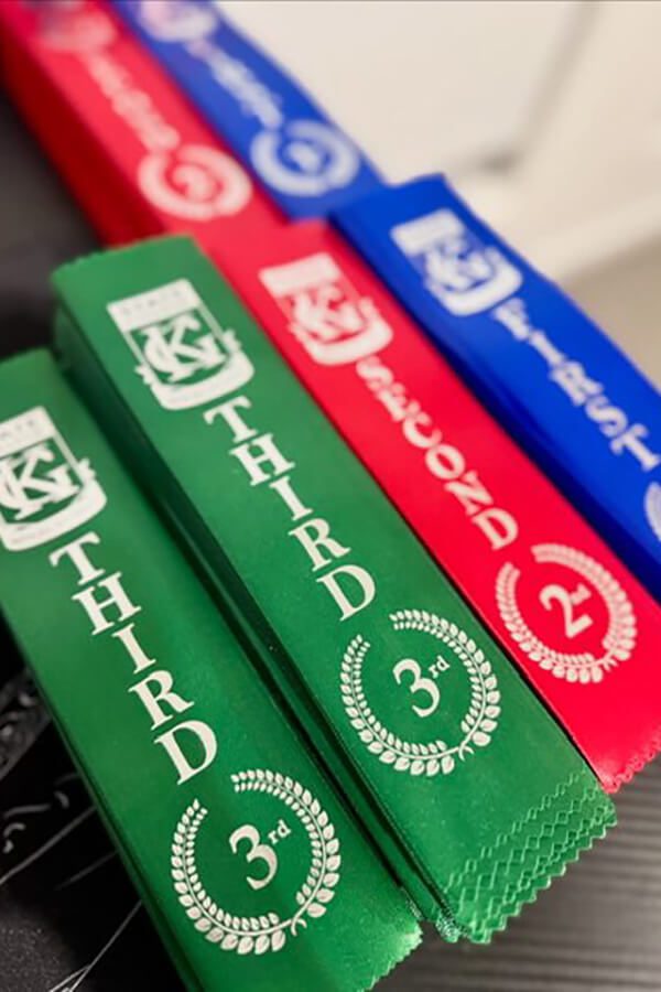 We create customised Award Ribbons with your school or club logo. Our award ribbons are designed to suit your preferences & are a popular, affordable choice for School Carnivals, Academic Achievements, Club Celebrations, Horse Shows and all types of occassions!